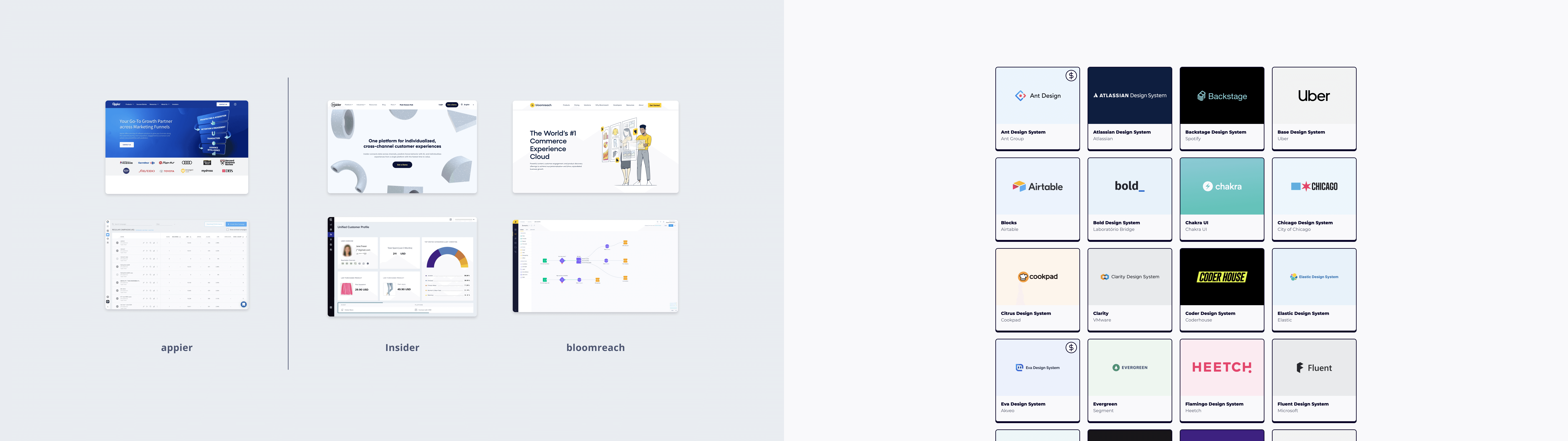 To understand best practices, I reviewed leading design systems across the industry and analyzed competitors such as Insider and Bloomreach. This helped identify common patterns in structure, scalability, and component organization, while highlighting gaps in Appier’s existing system and informing how it could be improved.